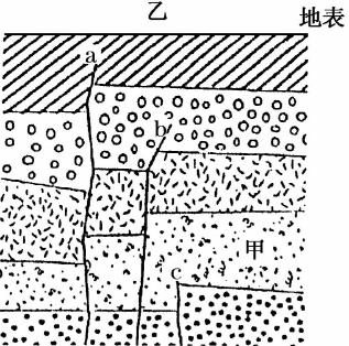 (3)从岩石的分类来看,图中地层中的岩石都是?岩。如果该图所示剖面为汶川灾区的某处,科技人员在地质钻探过程中发现甲地层中颗粒物大小不分杂乱堆积,则说明甲地层形成时的主要外力作用是?。(2分)