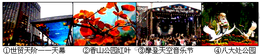 1、单选题 在内蒙古工作的小娜来北京游玩,下图是小娜在北京拍摄的四幅照片。回答1—3题。