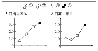 小题1:图中①②③④代表的国家人口增长符合欧洲发达国家现状的是(?)