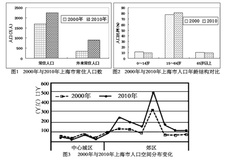 (2)由图 2 可见,2010 年上海市 65 岁以上人口已超过____%,说明上海市面临的主要人口问题是____________,