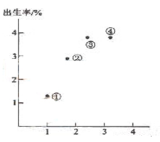 3、单选题 甲市2008年户籍人口出生9.67万人,出生率为0.699%;死亡10.7万人,死亡率为0.773%。甲市户籍人口这种自然增长态势已持续14年。图上显示四个地区的人口出生率和死亡率