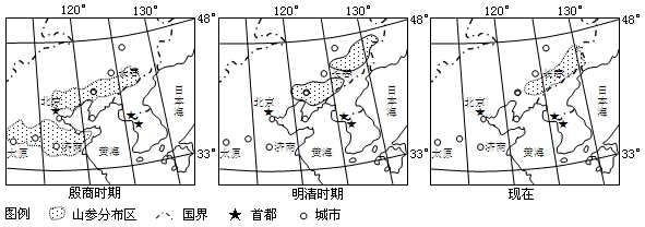 (1)根据材料一和上图,描述我国殷商以后山参资源空间分布的特点,并推测其原因。(10分)