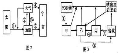 小题2:图3为“地壳物质循环简图”。各箭头表示方向,①②③④表示各类地质作用。下列叙述正确的是