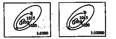 4、单选题 下列两幅等压线图中,A、B、C、D四地风力最大的是