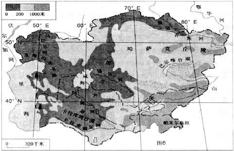 5、综合题 (28分)中亚五国(哈萨克斯坦、吉尔吉斯斯坦、塔吉克斯坦、乌兹别克斯坦、土库曼斯坦)有着重要的地缘位置和丰富的能源、矿产资源,被称为21世纪的战略能源和资源基地,与中国共有边界3300公里,在经济、能源等多方面与中国有着密切的关系。阅读以下材料,完成(1)~(5)题。