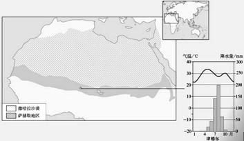 5、综合题 (12分)撒赫勒地区通常指撒哈拉沙漠南缘东西延伸的干旱与半干旱、热带沙漠与热带草原的过渡地带,年降水量大多为100~500毫米。20世纪60年代末70年代初,撒赫勒地区遭受罕见大旱,并引发了严重的荒漠化,致使经济受到沉重打击,前后有20多万人因饥饿而死亡、千百万人流离失所。20世纪50年代以来,随着人口的急剧增加,对粮食需求迅速增加,促使萨赫勒以南的旱作业不断向西北推进,农牧之争加剧。根据图文材料,回答下列问题。