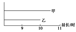 小题1:甲乙两地昼长小于12小时,说明图中季节为北半球的冬半年,穿过我国的晨线应该自东北向西南倾斜。两地同时日出,说明某一时刻两地同时位于晨线上,冬半年甲地比乙地昼长长一些,说明甲地比乙地纬度低。所以,甲地位于乙地的西南方向。