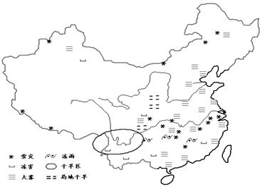 D.云贵高原和四川盆地遭受大范围的旱灾