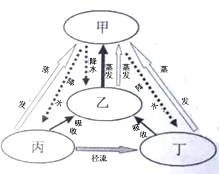 2、单选题 下图为“水循环联系四大圈层示意图”。读图完成各题。