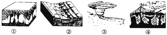 1、上图所示四种地貌景观形成过程中,能量主要来自于地球外部的是