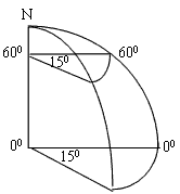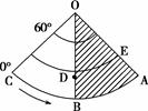 1、综合题 下图中,箭头表示地球自转方向,OB为本初子午线,阴影部分为黑夜,回答下列问题。