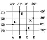 1.关于图中所见部分不同纬线的长度,叙述正确的是2.甲、乙两人从G点出发,甲向北行,乙向东行,如果前进的方向保持不变,那么3.图中符合“东半球、北半球、低纬度”条件的是