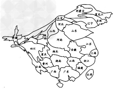 3、单选题 下图是我国各省区某项指标统计地图(省区面积大小表示该指标值的大小),据此回答1、2题。?