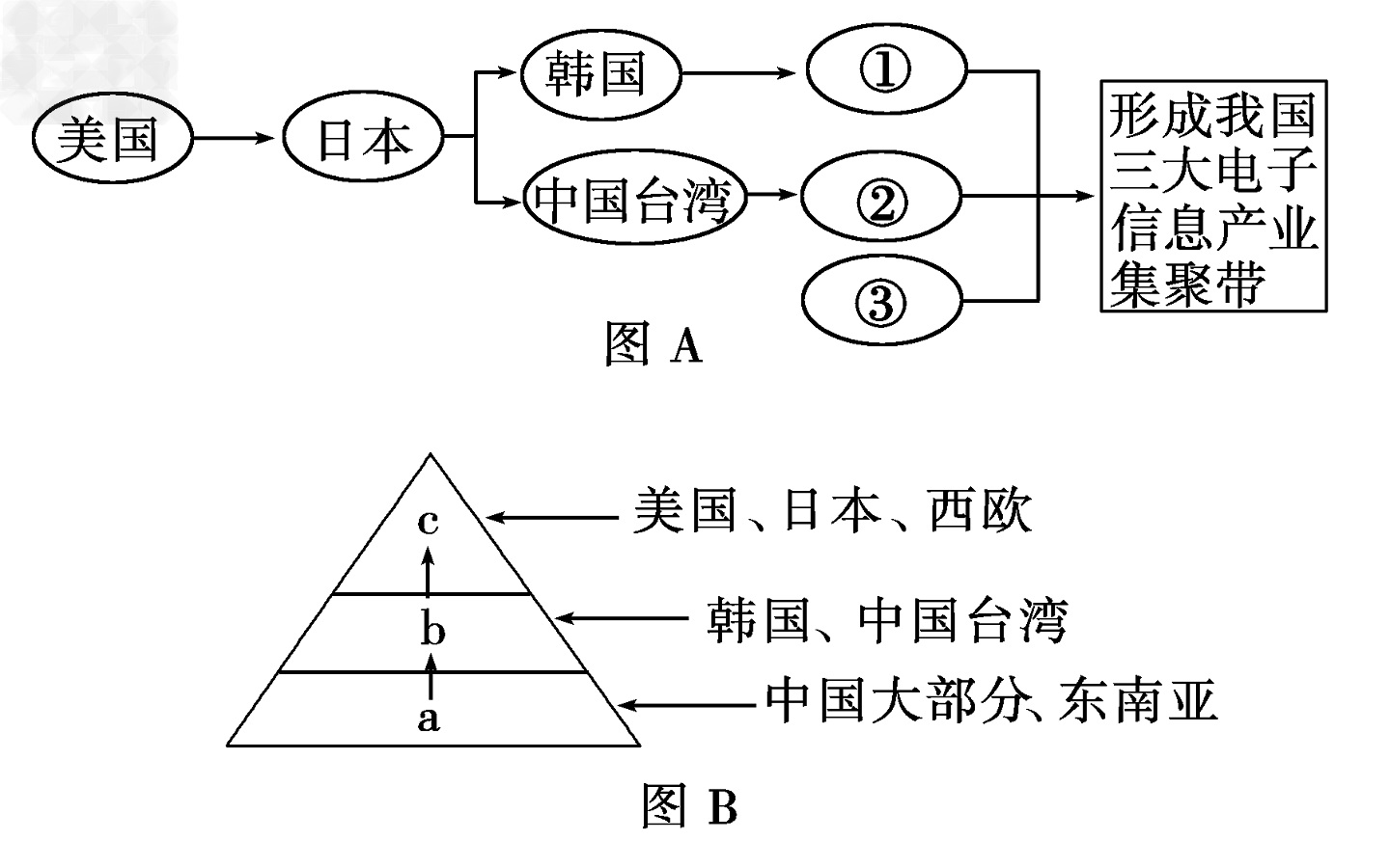 1.图A中,我国承接全球IT产生转移的路径①是指