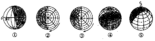 2、单选题 所给日照图中(图1,箭头表示太阳光线),能正确反映春分日日照状况的是