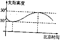 (5)此时,太阳直射点的纬度为20°N,北京所在纬度是40°N,代入正午太阳高度的计算公式:H=90?-|当地纬度±直射点纬度|,则北京此日的正午太阳高度为70度。