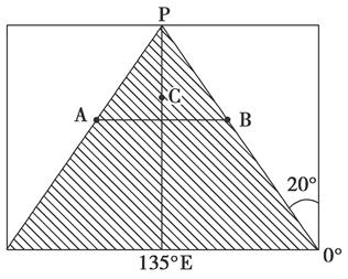 (1)图示越往北昼越长,判断太阳直射点位于北半球,且晨昏线与经线成20°夹角,故判断太阳直射点的纬度为20°N。夜半球平分经线为135°E,那么昼半球的平分经线应是45°W。