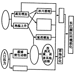 4、填表题 下图为长江源区环境恶化过程示意图,按相关关系将图中的代码分别填入各项前的括号内。
