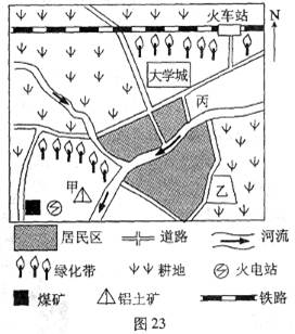 4、综合题 图23为我国中部某城市示意图。读图,回答下列问题。(10分)