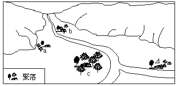 1、单选题 该图河谷中的四个乡村聚落,最有可能发展为城市的是(?)