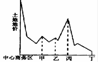 交通便利的地方,地价较高;故判断丙处交通通达度高。选C项。