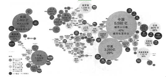 5、单选题 20世纪初.世界城市人口22亿.目前已达35亿。预计到2030年,将上升到50亿。下图为目前全球城市人口和城市化率分布示意图。读图完成下列问题