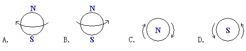 3、单选题 下面四幅图中, 地球自转方向正确的是(? )