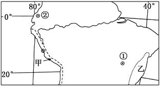 小题1:根据图示:图中甲地区沿海为秘鲁寒流,秘鲁寒流降温作用显著,从大陆吹来的暖空气,底部受冷,形成雾,属于平流雾。所以本题选择A选项。