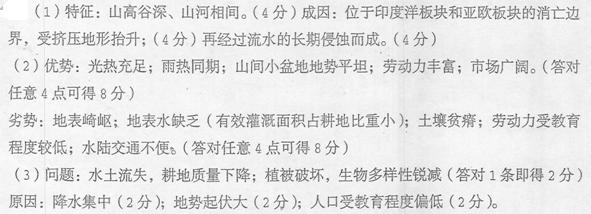 参考答案:(1)(纬度低,)热量条件好,(2分)降水丰富,(2分)受寒潮影响小。(2分)