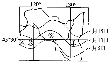 【小题1】图中①、②、③、④四地积雪融化完毕日期最早的是( )