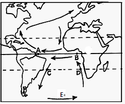 (2)B、C、D、E四条洋流中,属于寒流的是________和________(填代号)