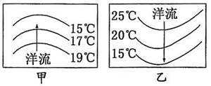 1、单选题 如图,甲、乙分别表示两支洋流和海水表面温度分布。下列叙述正确的是(?)