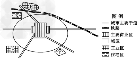 3、单选题 下图是我省某中等城市功能区分布示意图。读图回答1—2题。