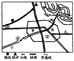? 我国东部某城市拟新建钢铁厂、造纸厂、自来水厂及服装厂,请在图中①②③④四处选择各自合理的厂址,并简述理由。