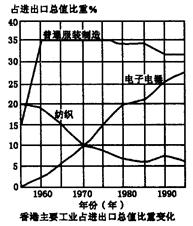 3、综合题 读香港主要工业占进出口总值比例变化图