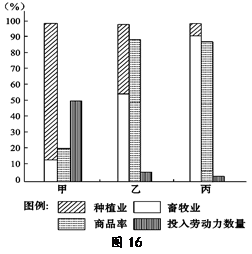 (1)读图16,甲是??(农业地域类型),其突出的社会经济条件有?、?。