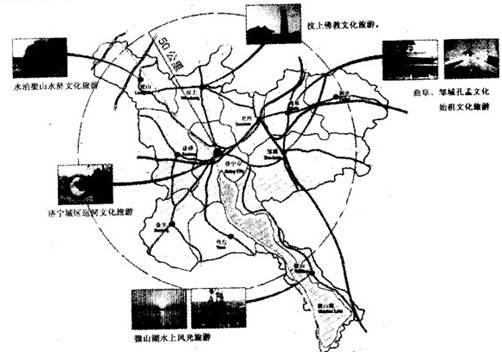 2、综合题 (10分)【旅游地理】2013年2月18日,经国务院批准,《国民旅游休闲纲要(2013—2020年)》发布。下图为济宁城区及周边主要旅游景区分布图。读图回答下列问题。