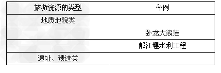 1.根据图中信息,完成下列表格 2.图中属于世界文化遗产的景点是__________,属于世界自然遗产景点的是___________。