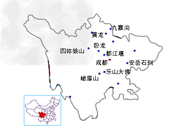 2、综合题  四川省位于我国西南部,拥有丰富的旅游资源,结合四川省部分旅游资源分布图,完成下列要求。