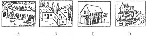 小题2:下图四幅民居建筑图中,与C地附近居民建筑特征较为一致的是B