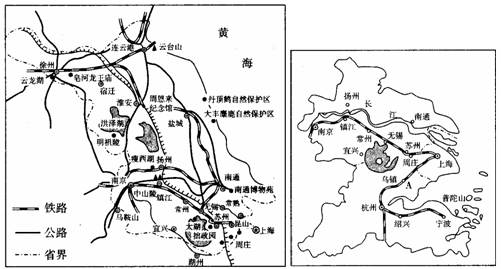 材料二?江苏旅游景点分布图?材料三?长江三角洲地区主要旅游城市分布图
