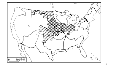 (1)图中①②两地表示美国的农业带,所种植的作物是??。 ①②两地的农业地域类型为?。我国的??地区也有这种农业。(3分)