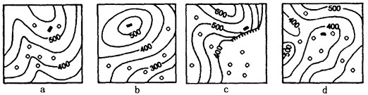 3、单选题 下图是四幅等高线地形示意图,能体现“深山藏古寺”意境的是