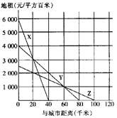 1.从图中土地租金高低看:在距离市中心20千米~60千米的范围内,Y农业的付租能力最高,有发展的最佳位置优势。
