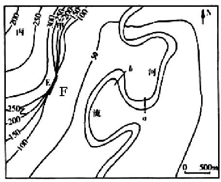 小题2:断崖底部的F点海拔及EF两点之间的相对高度分别是