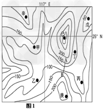 5、单选题 读某地等高线图(图1),回答1—3题。