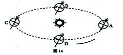 2、综合题 图14为北半球二分二至地球位置示意图,读图回答下列问题。(6分)