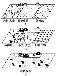 (1)A阶段农业生产以________业为主,B阶段农业生产是种植业和畜牧业并重,农业地域类型是________,C阶段则以________为主。(3分)