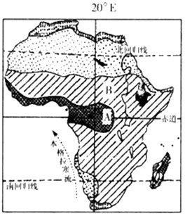 5、综合题 下图为非洲自然带分布示意图,读图完成下列问题。