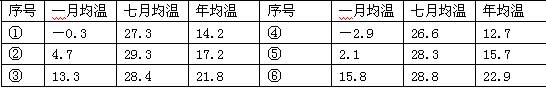 5、单选题 表中序号①至⑥为我国六座城市。回答下列各题。(单位:℃)